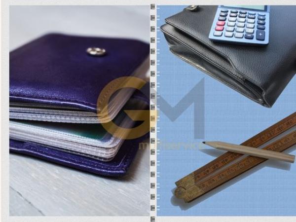 in similpelle con porta card, porta documenti, inserto per penna con blocco A4